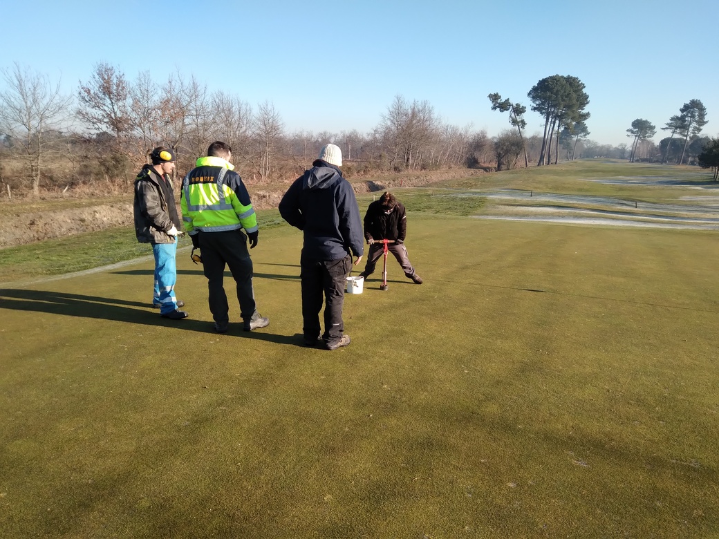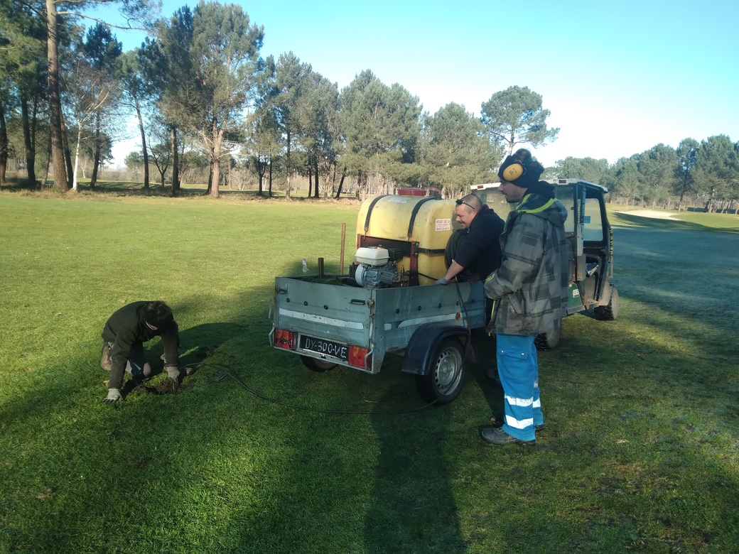 En février les stagiaires en formation au BPA Travaux Aménagements Paysagers du CFPPA de Latresne (Aérocampus Aquitaine) ont réalisé une immersion technique sur les gazons sportifs sur le golf de Pessac. Encadré par les jardiniers et le responsable technique, ils ont découvert la spécificité d’un gazon sportif et de son matériel spécifique. Ils ont pu participer à l’entretien du matériel, mais également à la maintenance du système d’arrosage. Enfin ils ont réalisé des travaux sur l’aire de jeux.